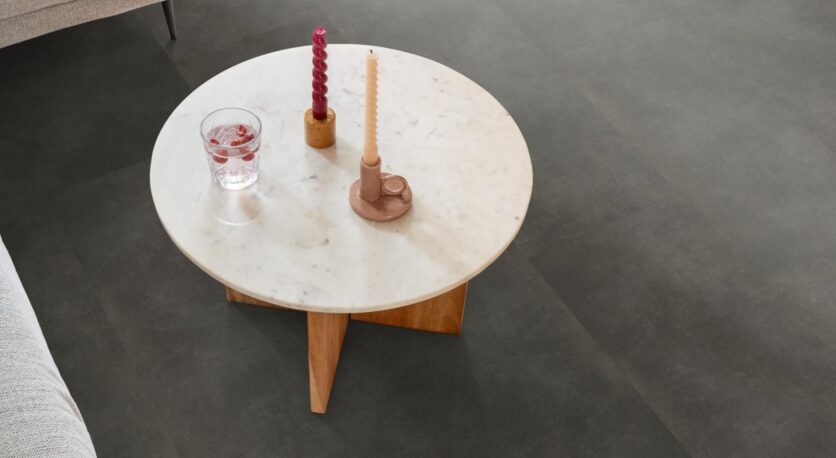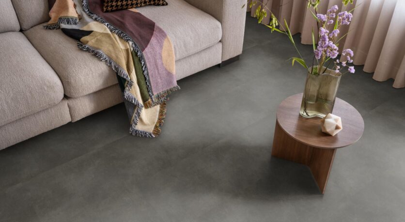 Het populaire betonlook is niet meer weg te denken uit onze pvc collectie. De moderne en strakke uitstraling van deze vloer komt prachtig tot zijn recht in ieder interieur en is daarnaast gemakkelijk te combineren. De tegels zijn waterbestendig en mede daardoor zeer gemakkelijk in onderhoud. Met de sterke toplaag van 0.55 mm heb je jarenlang plezier van dit tijdloze dessin.
