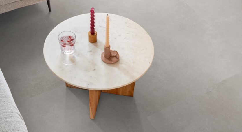 Met de Sarino XL haal je het stoere betonlook-effect in huis, zonder gedoe. Deze trendy grote tegels brengen direct stijl in je interieur en zijn een perfecte oplossing voor wie een betonnen vloer net iets te lastig vindt. Bovendien is de Sarino XL meer dan alleen mooi: hij is waterbestendig, ideaal te combineren met vloerverwarming én vloerverkoeling. Of je nu gaat voor een strak, industrieel design of een modern interieur, deze vloer past overal.