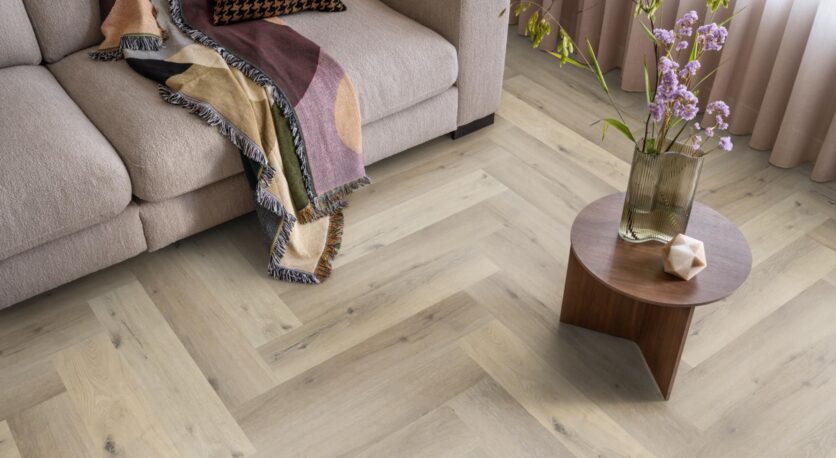 De moderne uitstraling van het trendy visgraat-pvc in karakteristieke uitvoering. Met het subtiele kleurverloop en de kleine noesten op de vloer geniet je van iedere pvc-strook op je vloer. De vloer is beschikbaar in vier kleuren, iets passends voor elke woonstijl. Door de 0.55 mm toplaag is de vloer goed beschermd en zeer geschikt voor intensief gebruik.
