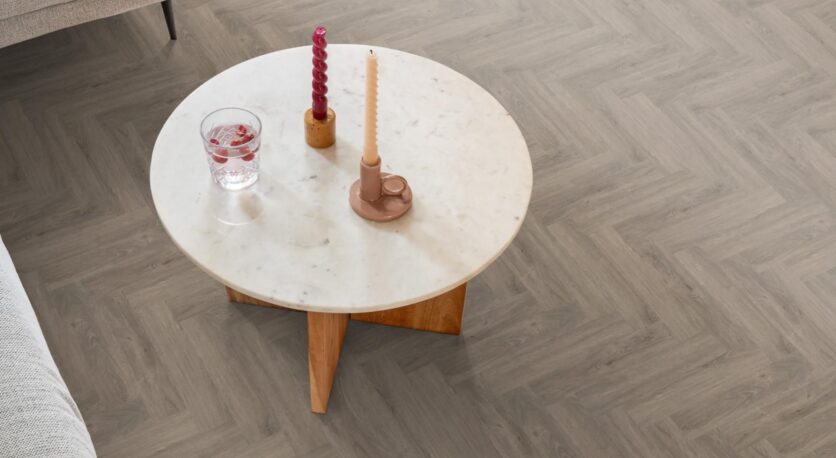 De moderne uitstraling van het trendy visgraat-pvc in karakteristieke uitvoering. Met het subtiele kleurverloop en de kleine noesten op de vloer geniet je van iedere pvc-strook op je vloer. De vloer is beschikbaar in vier kleuren, iets passends voor elke woonstijl. Door de 0.55 mm toplaag is de vloer goed beschermd en zeer geschikt voor intensief gebruik