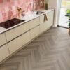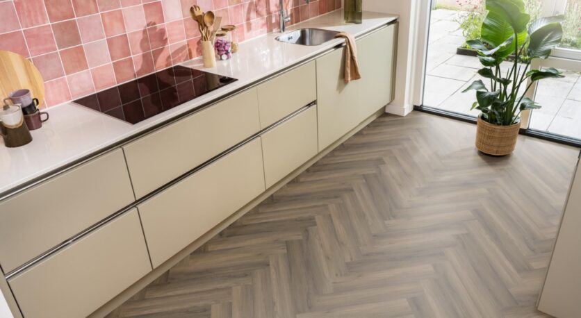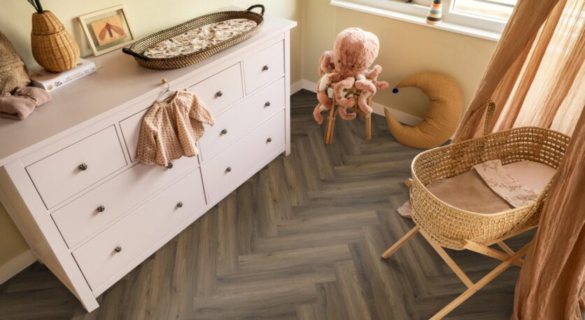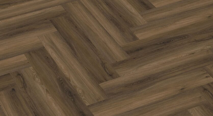 De warme en rijke uitstraling van hout is terug te vinden in deze rustige en natuurgetrouwe visgraat pvc vloer. Deze visgraat pvc vloer is verkrijgbaar in zes kleuren, variërend van beige tot donkergrijs. Voor elk interieur een passende kleur. De stroken zijn afgewerkt met een extra matte toplaag en hebben een dikte van 0,55 mm.