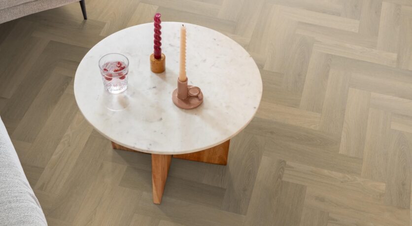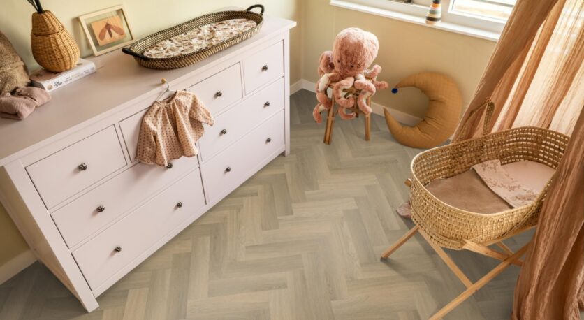De moderne uitstraling van visgraat pvc in karakteristieke uitvoering. Met het subtiele kleurverloop en de kleine noesten heeft deze vloer een prachtig rustiek karakter. Door de 0.55 mm toplaag is de vloer geschikt voor intensief gebruik. Daarnaast is deze click pvc-vloer voorzien van geluiddempende onderlaag, wat zorgt voor demping van het contactgeluid.