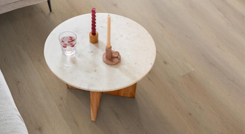 De Vivero is een prachtige comfortabele pvc vloer, met extra lange planken van 152 cm. Hierdoor lijkt het alsof je ruimte een stuk groter is. De vloer bezit een aantal fantastische eigenschappen, zo is de Vivero geschikt voor vloerverwarming, waterbestendig en wordt het contactgeluid verminderd. De pvc vloer heeft een ‘embossed in register’ (EIR) afwerking. Daardoor zie je niet alleen patronen en noesten, maar voel je ze ook!